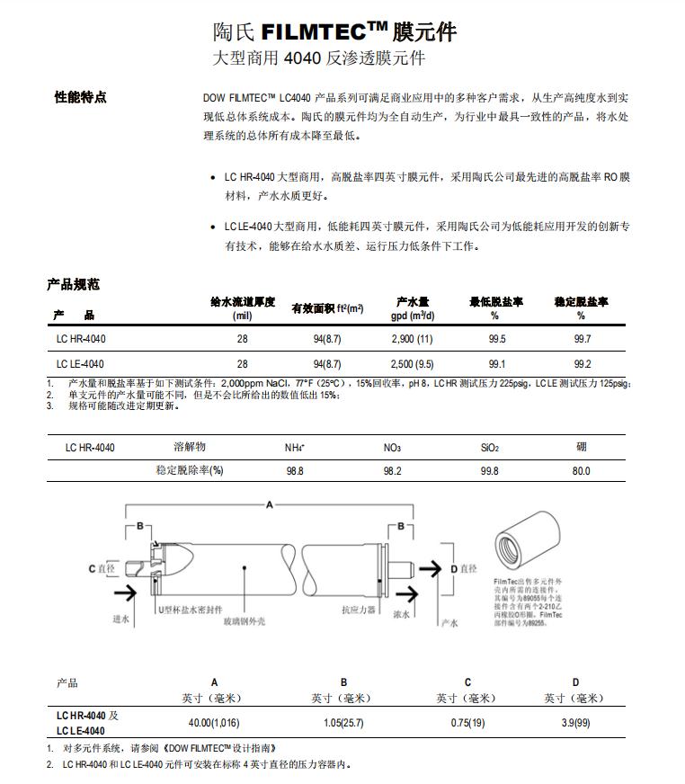 美國陶氏膜LCLE-4040產(chǎn)品規(guī)范: